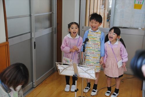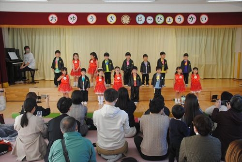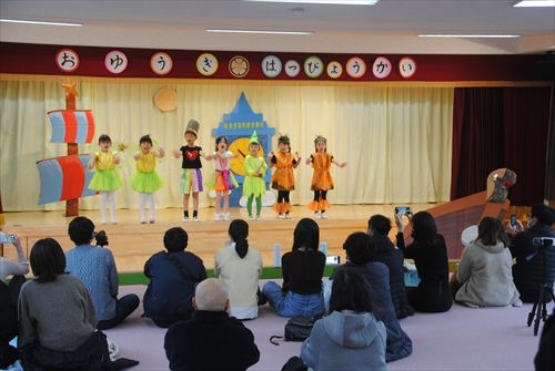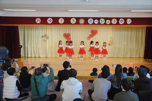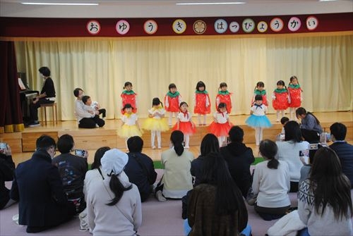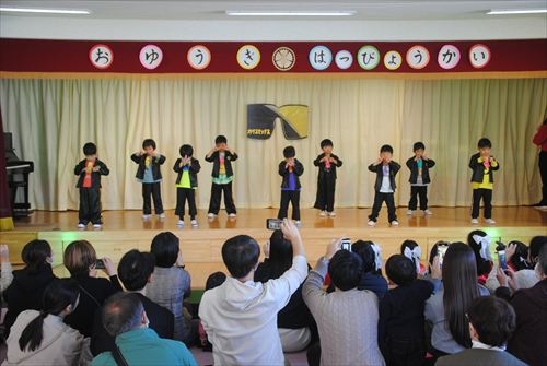今日はみんなが楽しみにしていたお遊戯発表会。お客さんがいっぱいで、ちょっぴりドキドキのみんな。でも、どの学年もリハーサルの時より素晴らしい演技で、みんなが感動できた、とっても素敵な発表会となりました!
