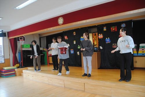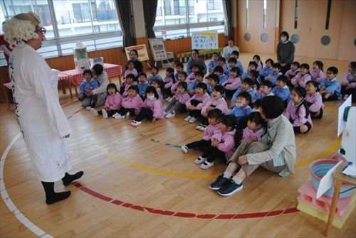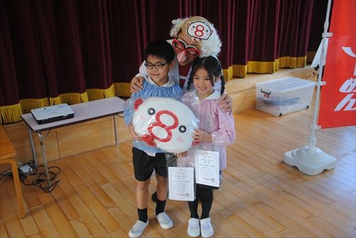 今日は、保護者会主催の子ども新年会の日。委員さんがヤクルトさんを迎え、腸や、うんちのことを楽しくわかりやすくお話してもらいました。最後はヤクルトマンと一緒にダンスもしましたよ!
