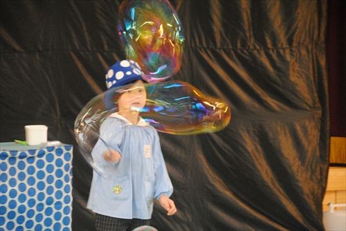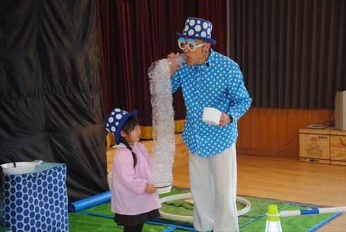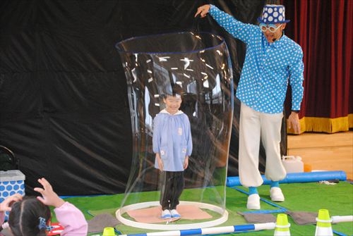 今日の子ども新年会に、シャボンさんが来てくれて、シャボン玉ショーをしてくれました。ちっちゃなたくさんのシャボン玉や、おっきなシャボン玉、最後には、みんながシャボン玉の中に入ったりと、シャボン玉で大興奮の楽しい1日となりました!!