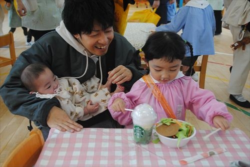 今日は、年長さん、年中さんが進級してから初めての体操教室と英語であそぼう、年少さんも英語であそぼうでした。みんなニコニコで楽しそうでしたよ!たんぽぽさんは初めての給食。おいしそうに食べていましたよ!!