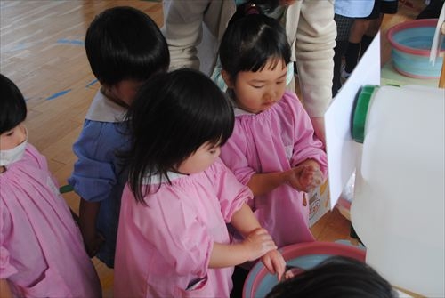 今日は、8番らーめんから手洗い博士と8かまのハチコが幼稚園に来園し、手洗い教室をしてくれました。バンバン8番ダンスをしたり、博士に手洗いの仕方を教わり実践したり、ガチャポンもして、楽しく学び、お土産もいただき、大満足のみんなでした!