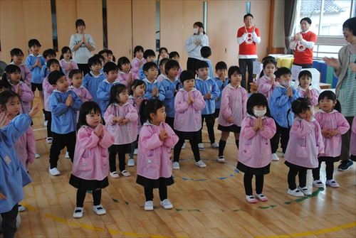 今日は入園式。新年長さんが、お遊戯で華を添えてくれて、新しいお友だちも増え、楽しい入園式となりました!